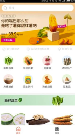 闪鲜到家(闪鲜到家生鲜商城)是一个全新的生鲜购物服务应用。带给您更新鲜优质的新鲜产品,具有非常全面的新鲜果蔬产品含量。可以更好的满足用户的日常新鲜购买需求。