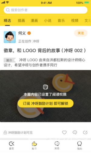 推荐:系统会推荐创作者作品,您可以订阅和支持作品;