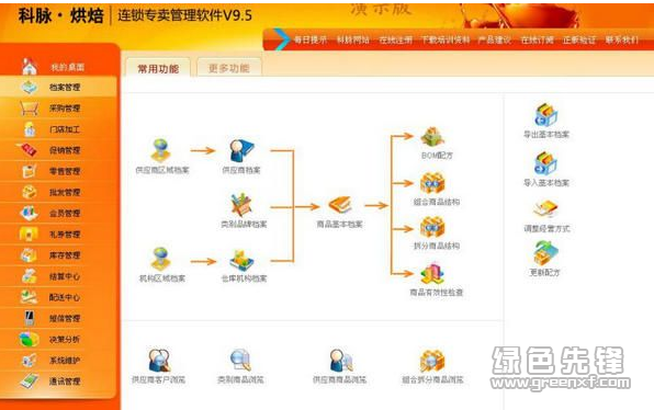 科脉烘焙连锁专卖管理软件是专业的、面向各类面包西饼糕点等烘焙连锁专卖企业管理特点而设计的商业管理系统,将先进的管理理念通过系统渗透到实际经营中,逐步规范烘焙专卖行业的企业管理。通过软件管理逐步建立科学、规范的管理方法,完善管理模式,进而实现利润最大化,快速成长等目标。