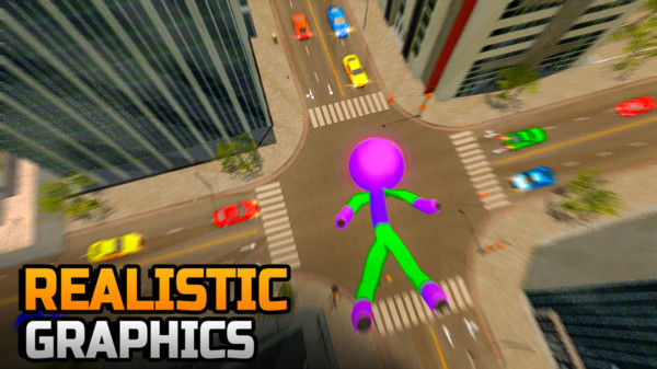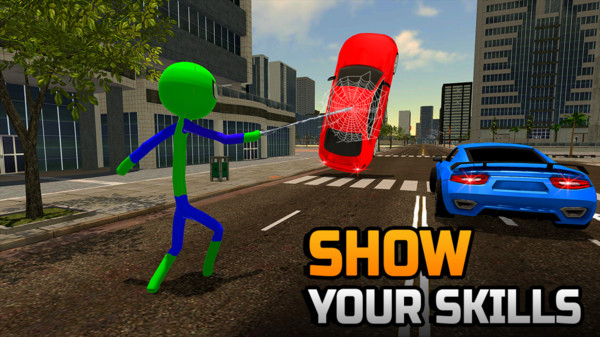 1. 玩家可以通过简单的操作,控制火柴人英雄在城市中自由穿梭,执行各种高难度动作。