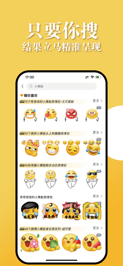 2. 具备搜索功能,输入关键词即可快速定位表情。