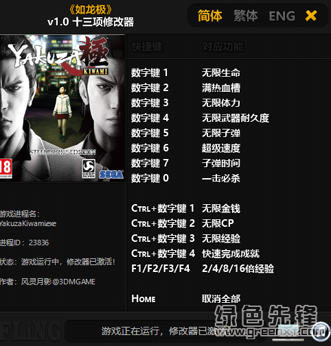 如龙极修改器(如龙极十三项属性修改工具)是一款强大好用的为如龙极游戏制作的属性修改工具。小编带来的这款如龙极修改器拥有强大全面的功能,操作起来简单方便,使用后可以修改游戏的多项属性,让玩家更轻松畅快的体验精彩有趣的游戏内容。能在十三个属性上对游戏进行修改,让玩家拥有无限生命,无限体力,无限子弹等属性,大大降低了游戏的难度,让剧情党玩家可以轻松体验剧情。喜欢这款游戏的朋友不要错过,快来下载使用吧!